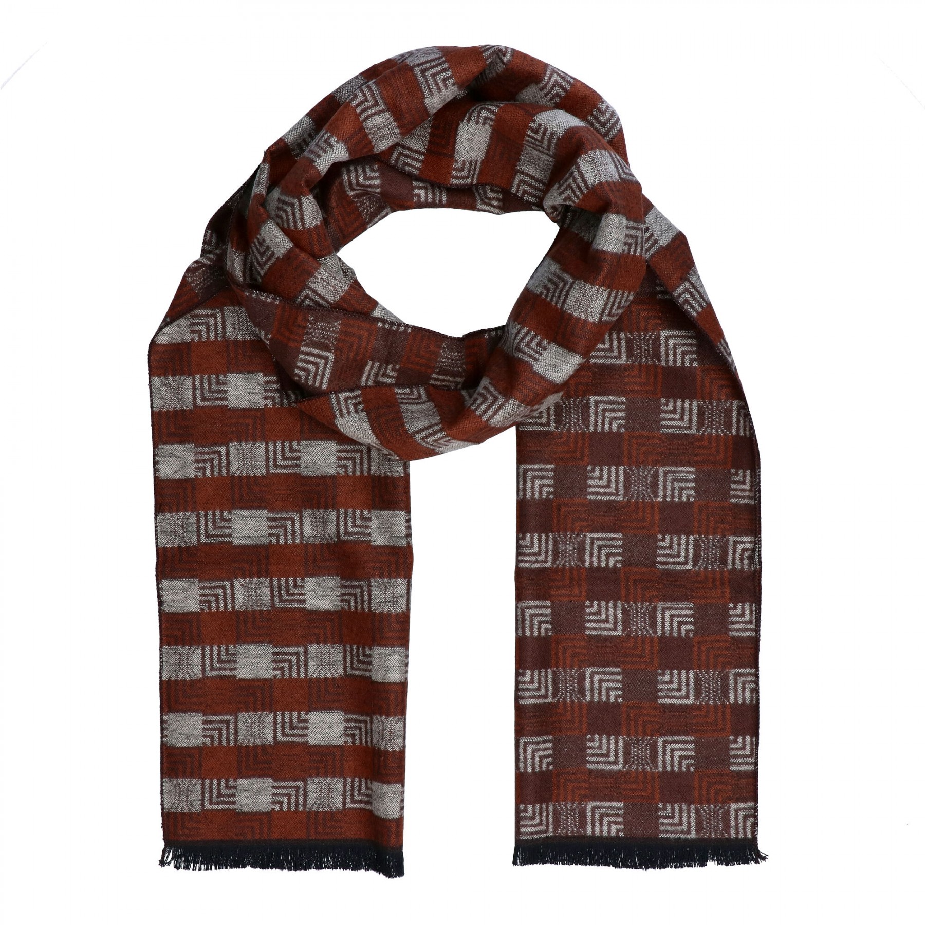 Szalik Wiskoza Brązowy Z Beżem W Kwadraciki