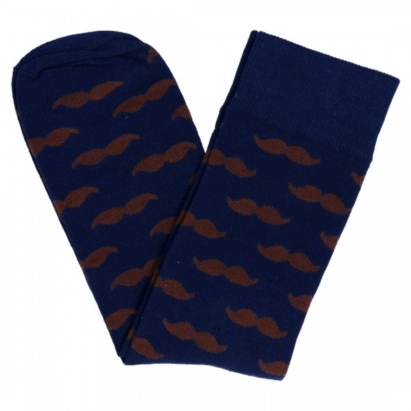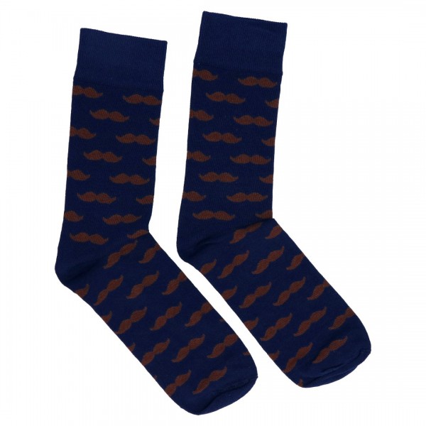 Skarpety Granatowe W Brązowe Wąsy