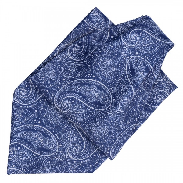 Jedwabny Fular Ascot Niebieski Z Białym Paisley