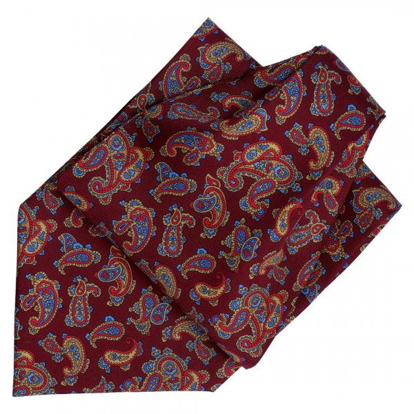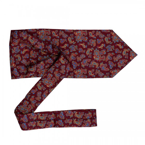 Jedwabny Fular Ascot Bordowy Ze Wzorem Paisley