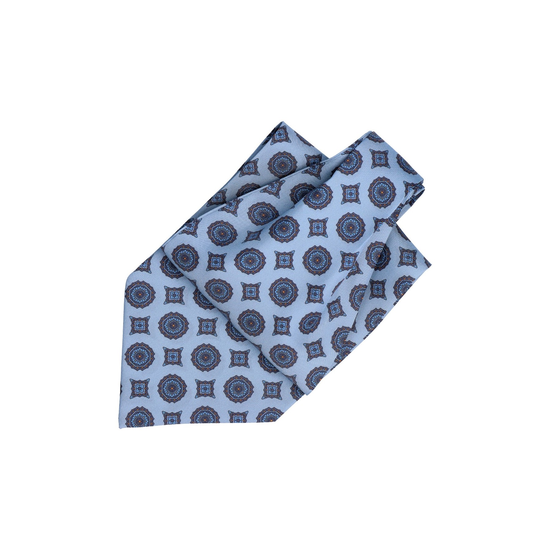 Jedwabny Fular Ascot Szary Z Błękitem W Kółka