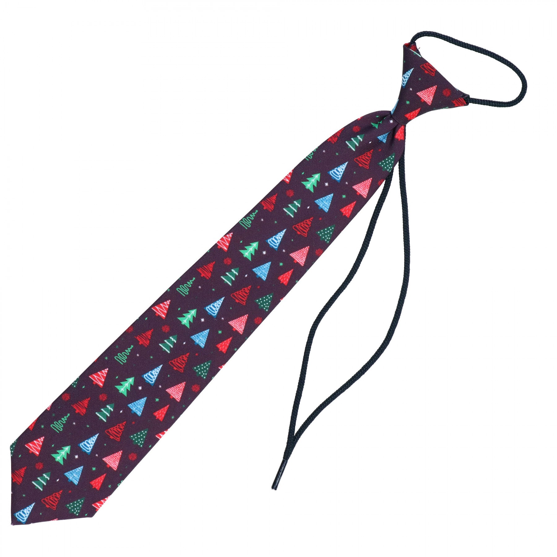 Krawat Dziecięcy Bordowy Świąteczny W Kolorowe Choinki