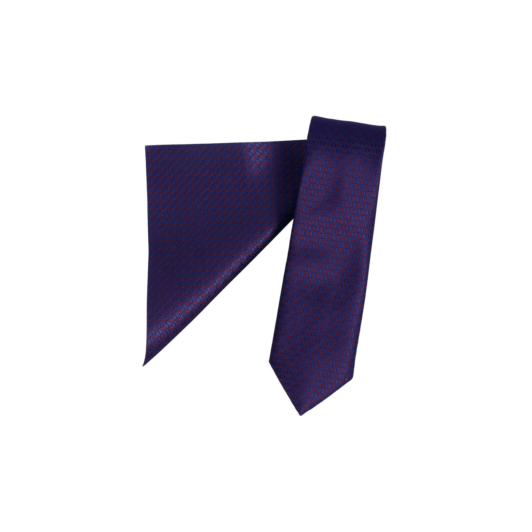 Krawat Dziecięcy + Poszetka Granatowy W Bordowe Kreseczki