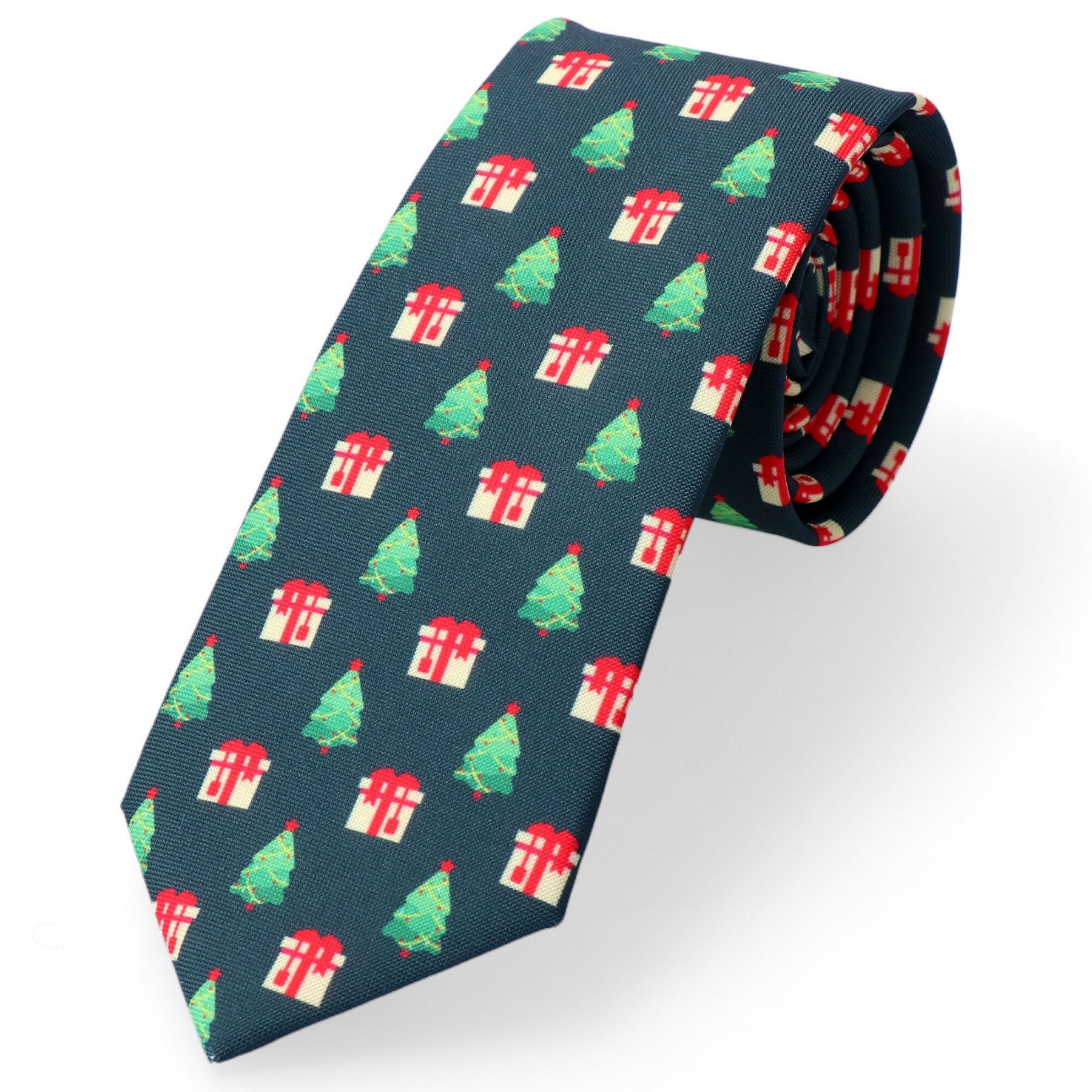 Krawat świąteczny - Zielony - Boże Narodzenie - Choinki I Prezenty