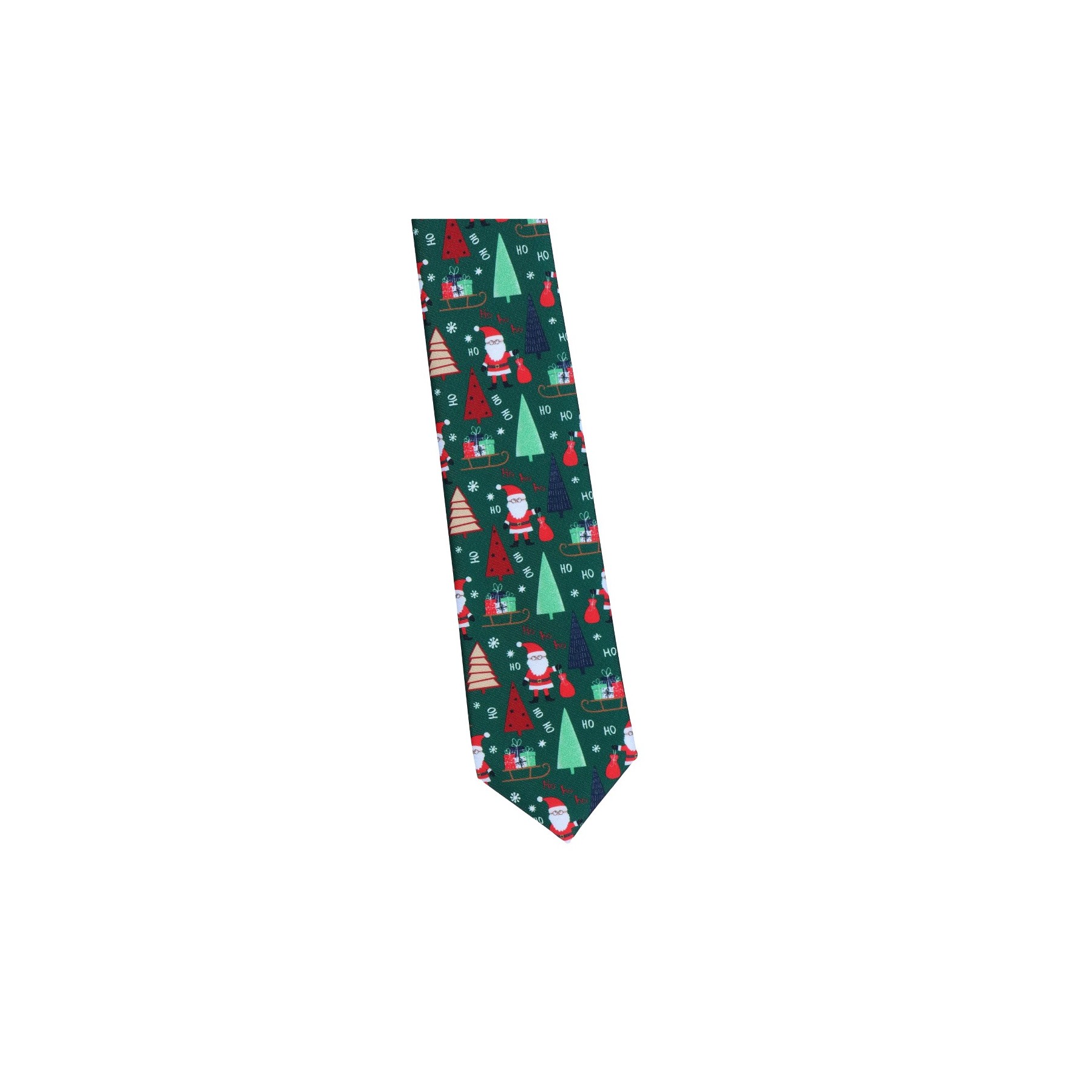 krawat prestiż poliester zielony szeroki - świąteczny w choinki i mikołaje