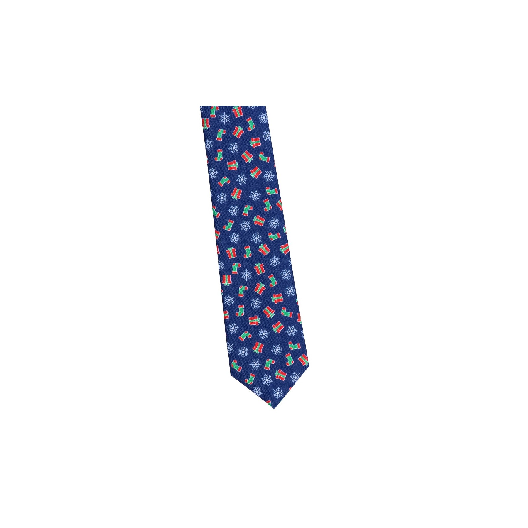 krawat prestiż poliester granatowy szeroki - świąteczny w prezenty, śnieżynki i skarpety