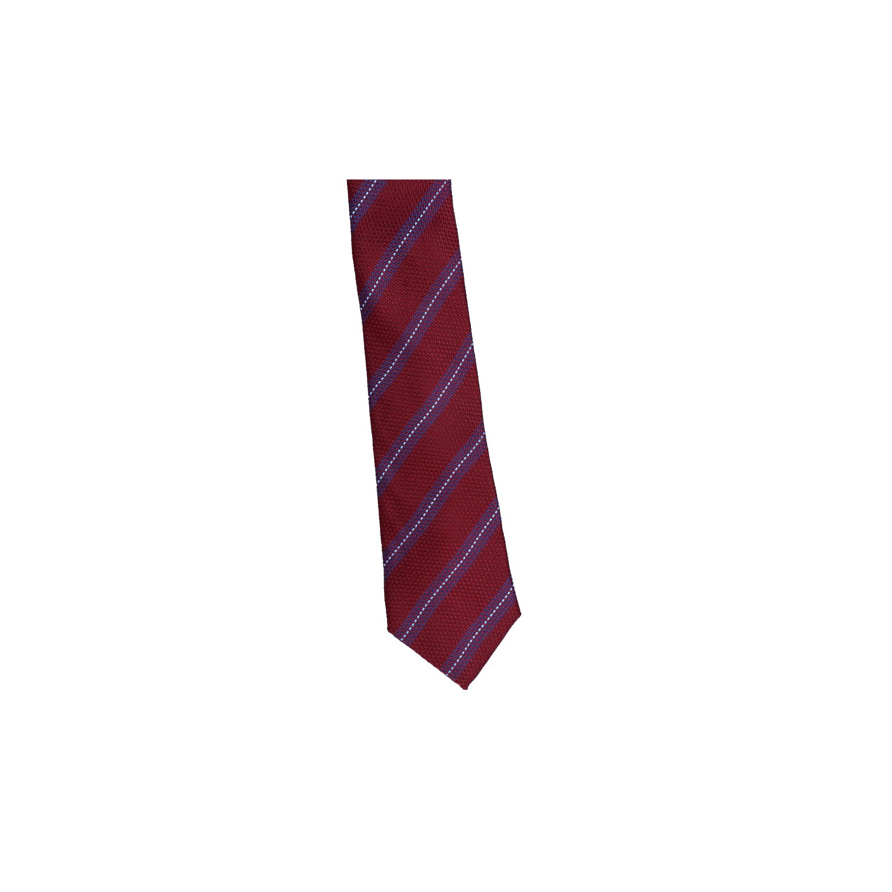 Krawat Poliester Szeroki - Bordowy Z Błękitnymi Paseczkami