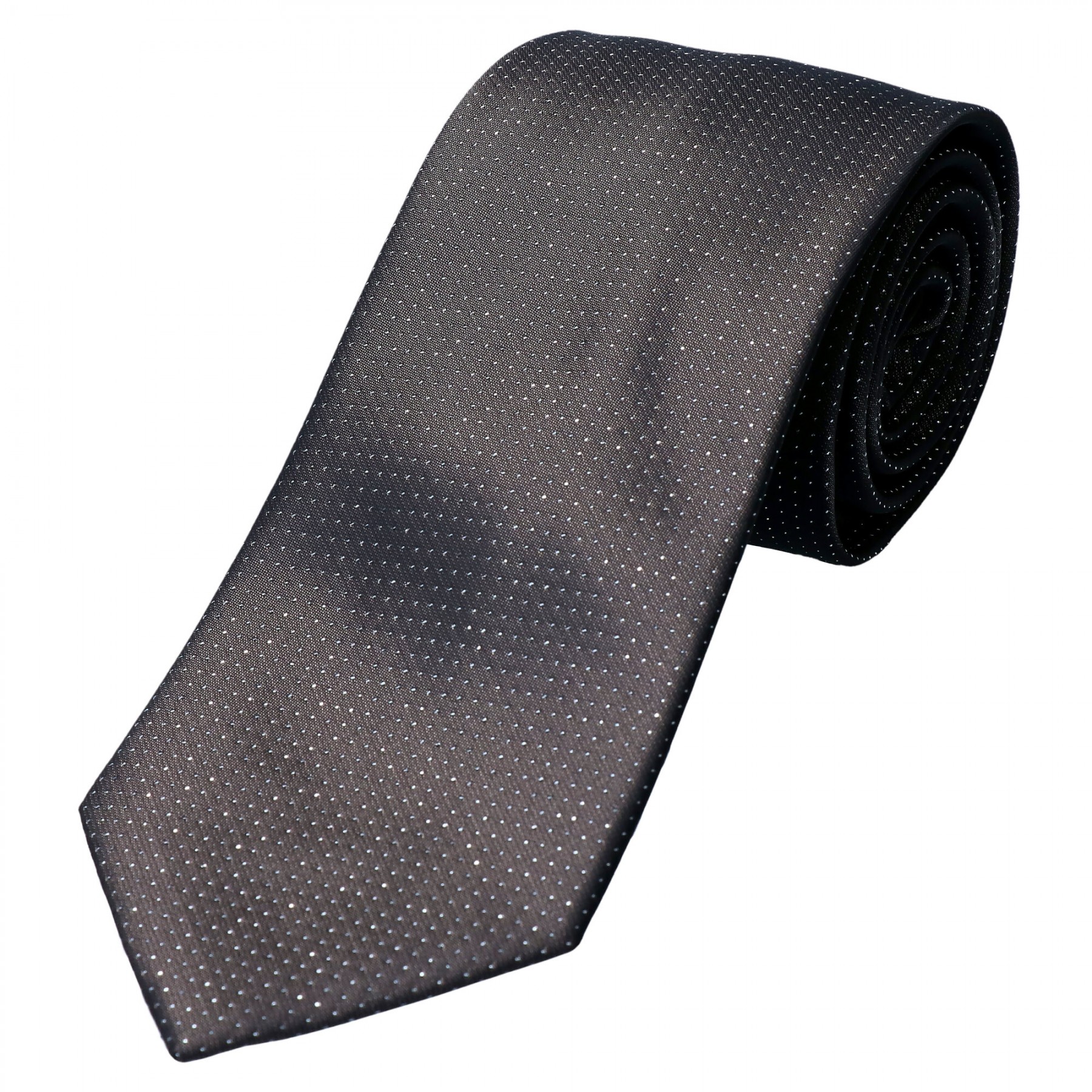 Krawat Szeroki Brązowy Ze Srebrną Kropeczką - Premium