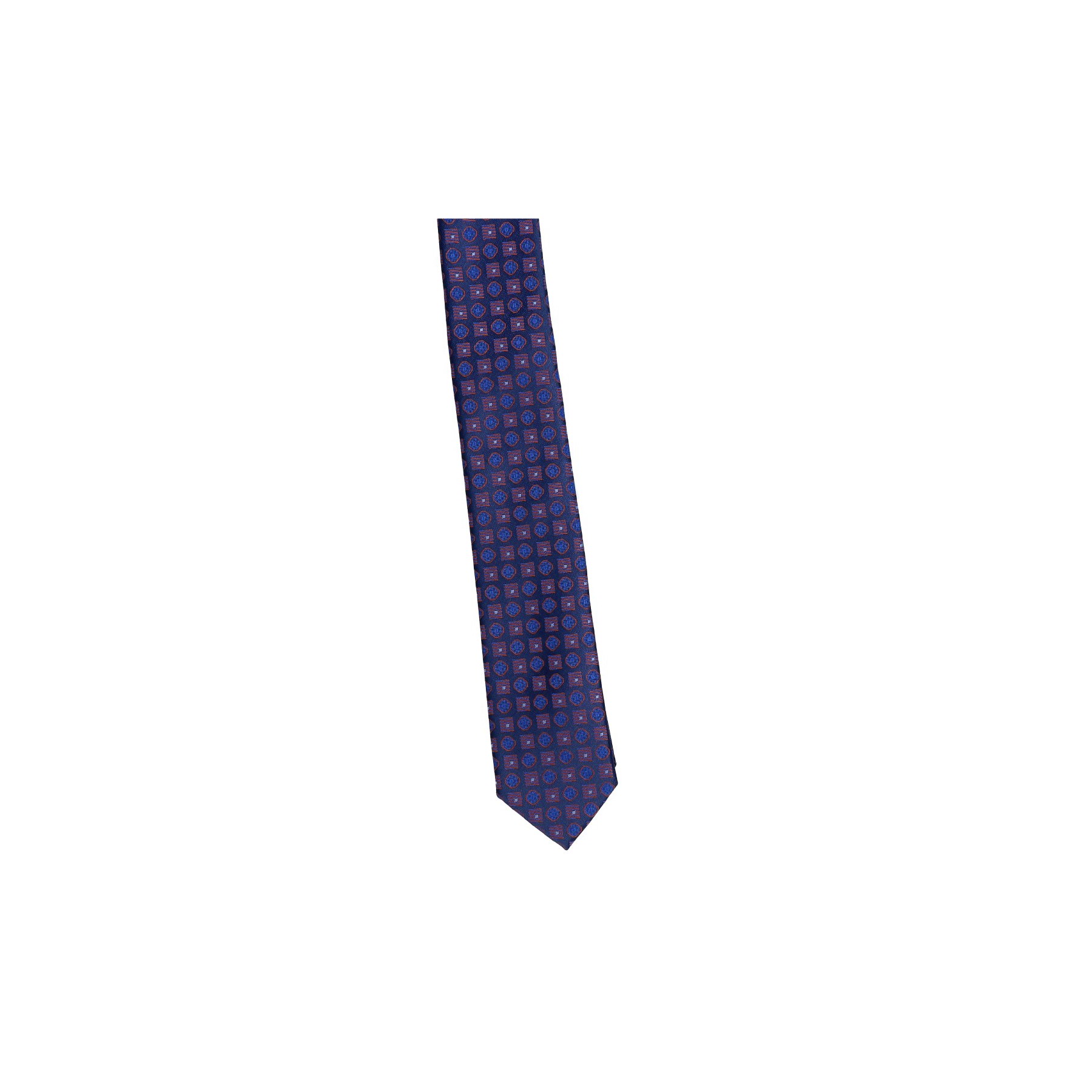 Krawat Poliester Wąski - Granatowy W Rude Kwadraciki I Chabrowe Kółka