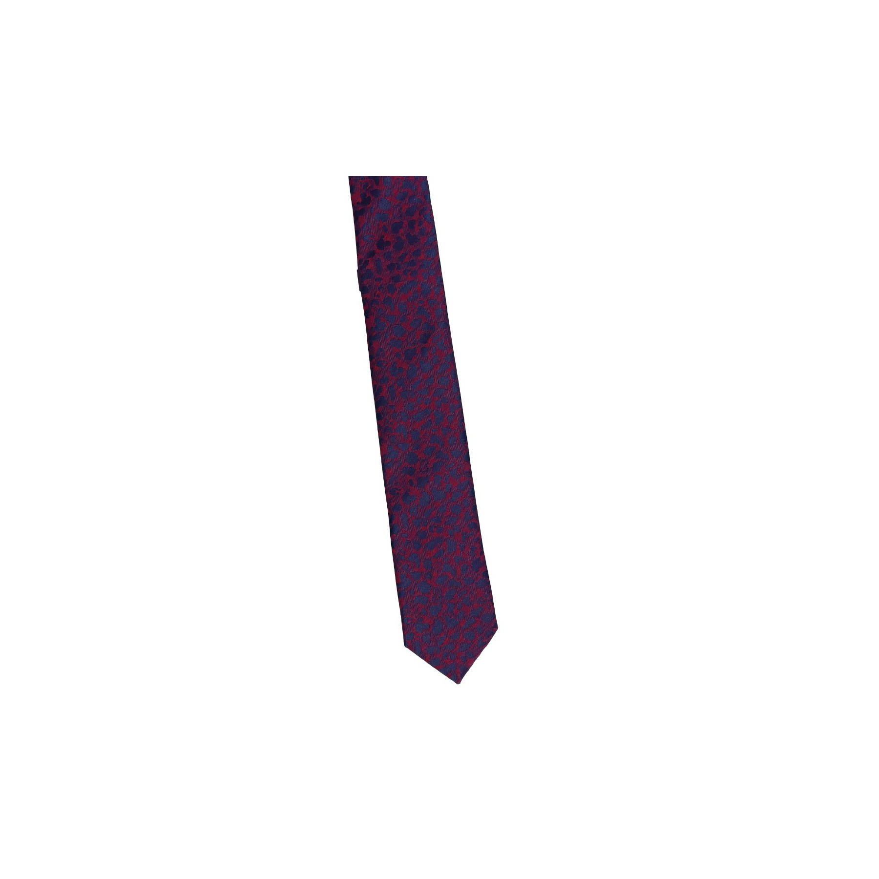 Krawat Poliester Wąski - Bordowy Z Granatowym Wzorkiem