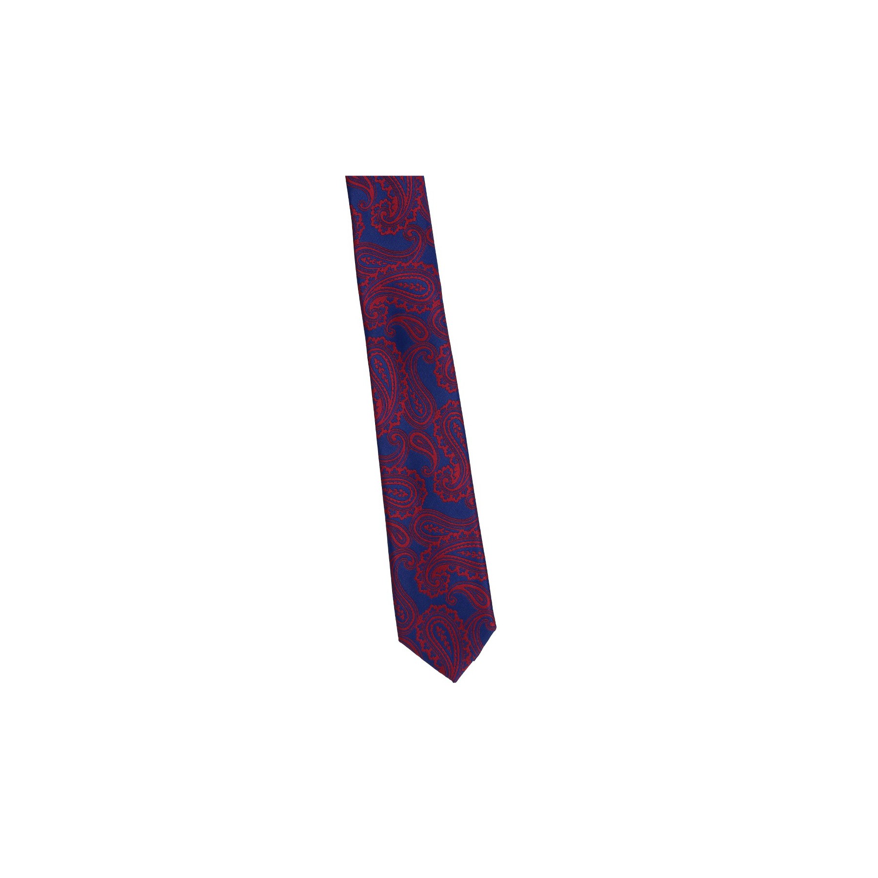 Krawat Poliester Wąski - Granatowy W Bordowy Wzór Paisley