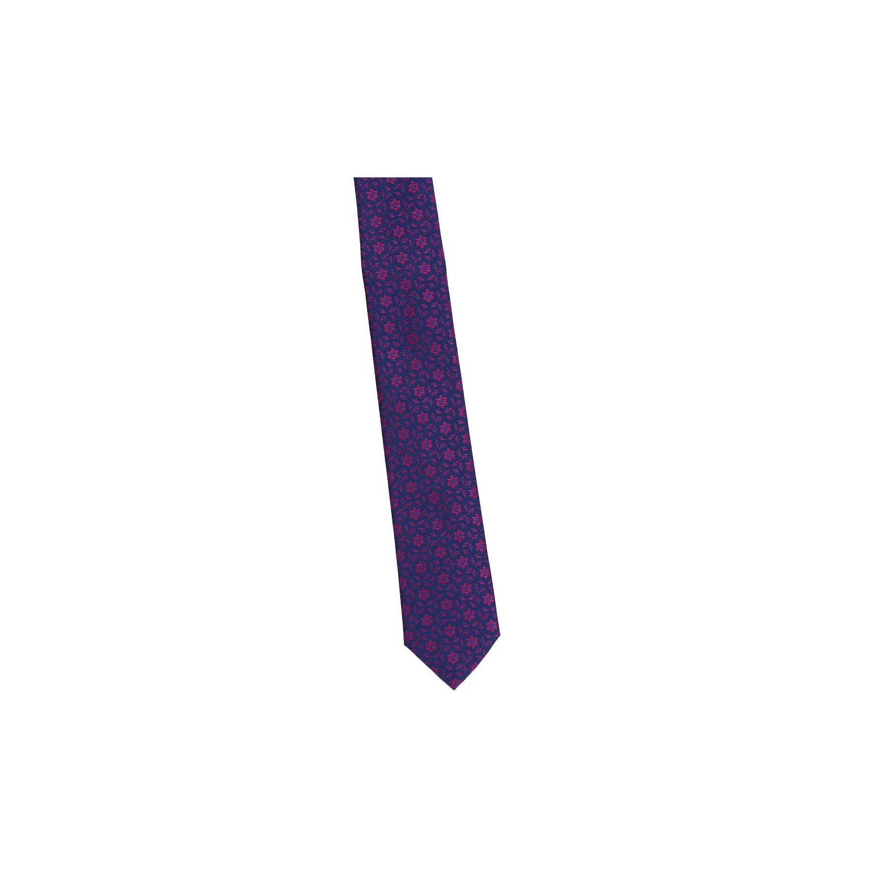 Krawat Poliester Wąski - Granatowy W Amarantowe Kwiatuszki