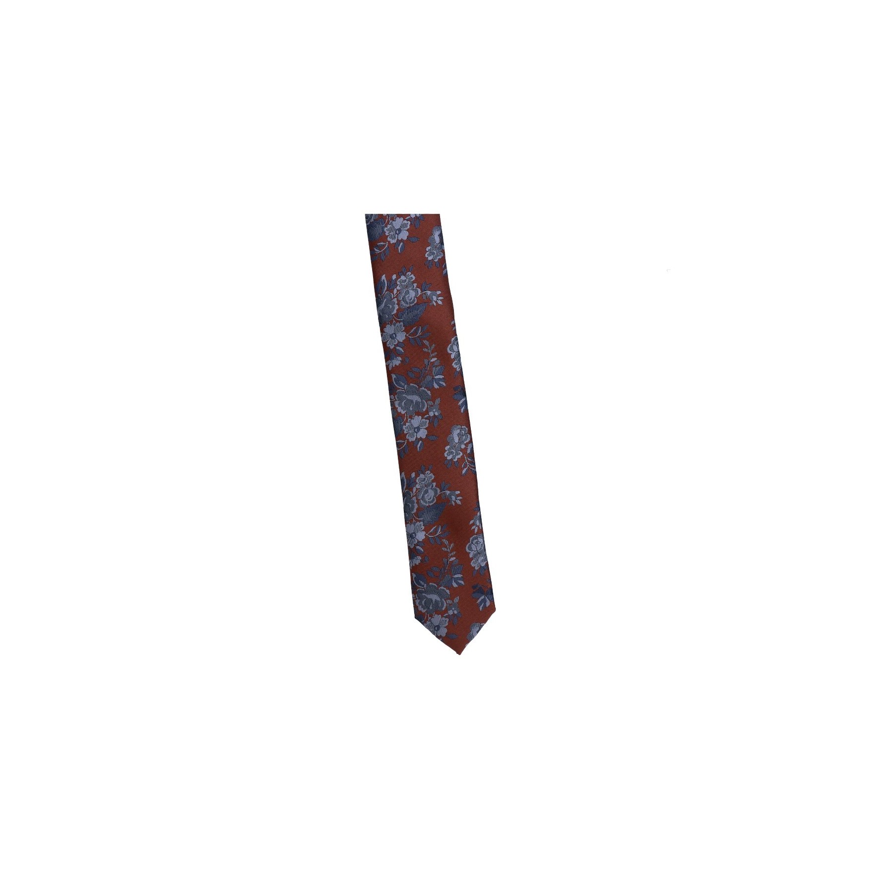 Krawat Poliester Wąski - Rudy W Szare Kwiaty