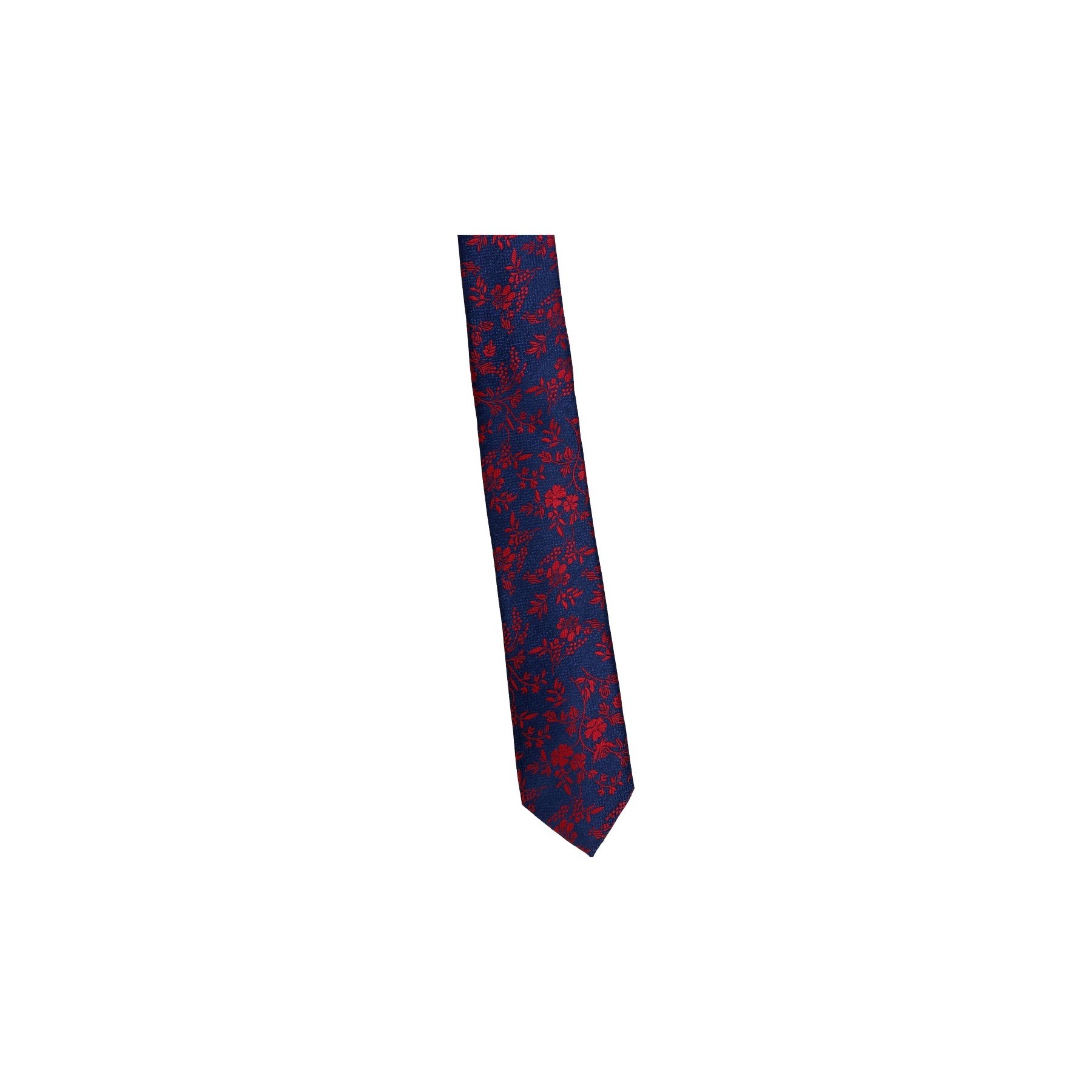 Krawat Poliester Wąski - Granatowy Czerwone Kwiatki