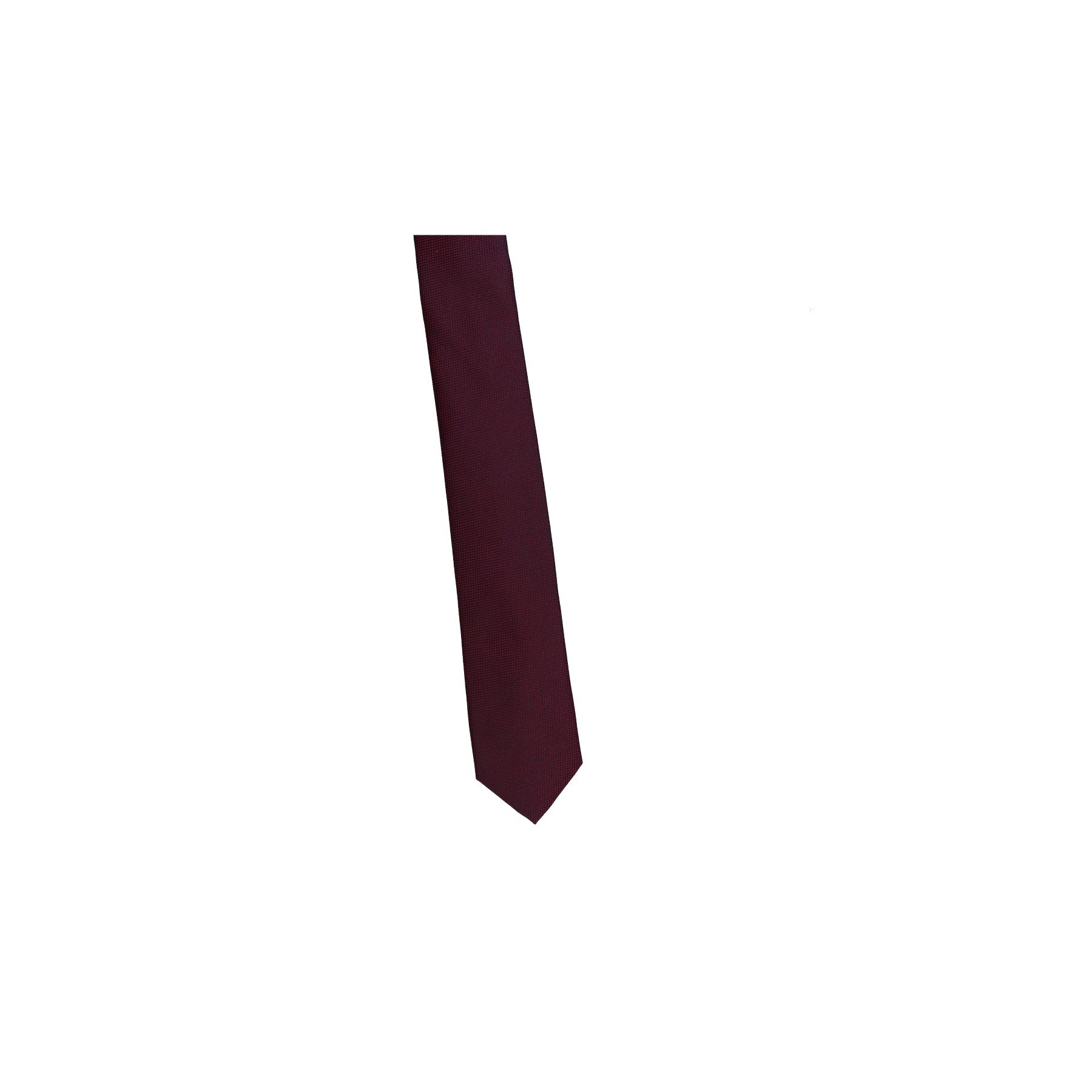 Krawat Poliester Wąski - Gładki Ciemny Bordowy