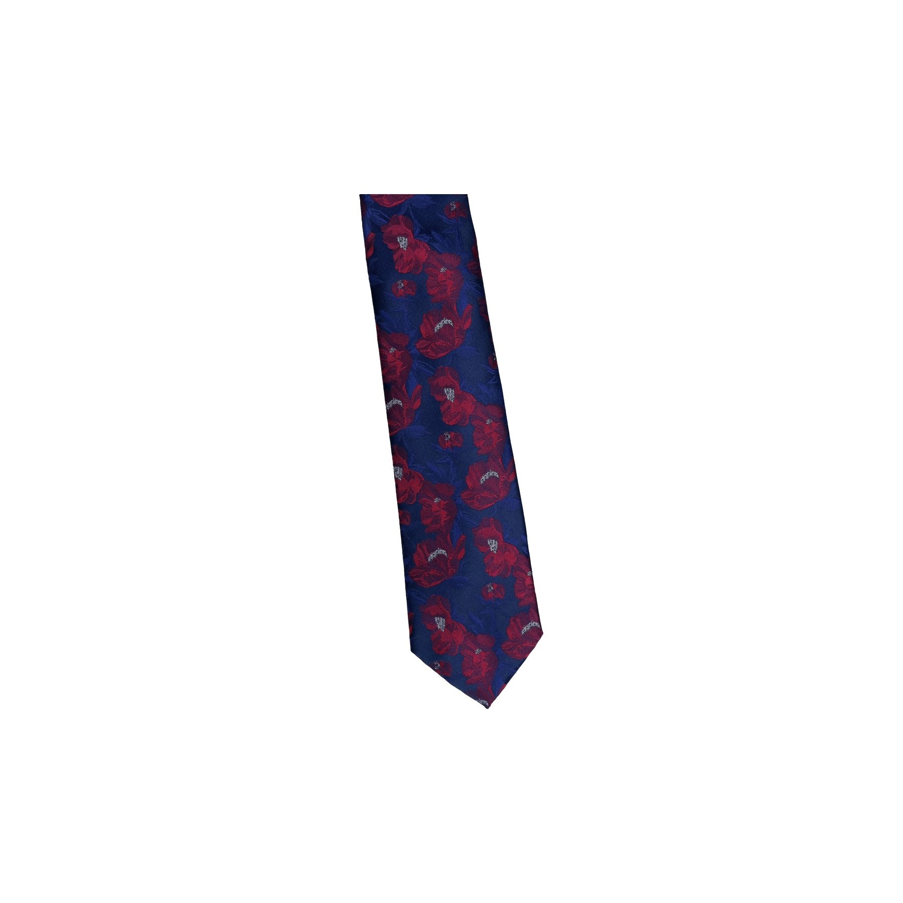 Krawat Szeroki Granatowy Czerwone Kwiaty - Floral