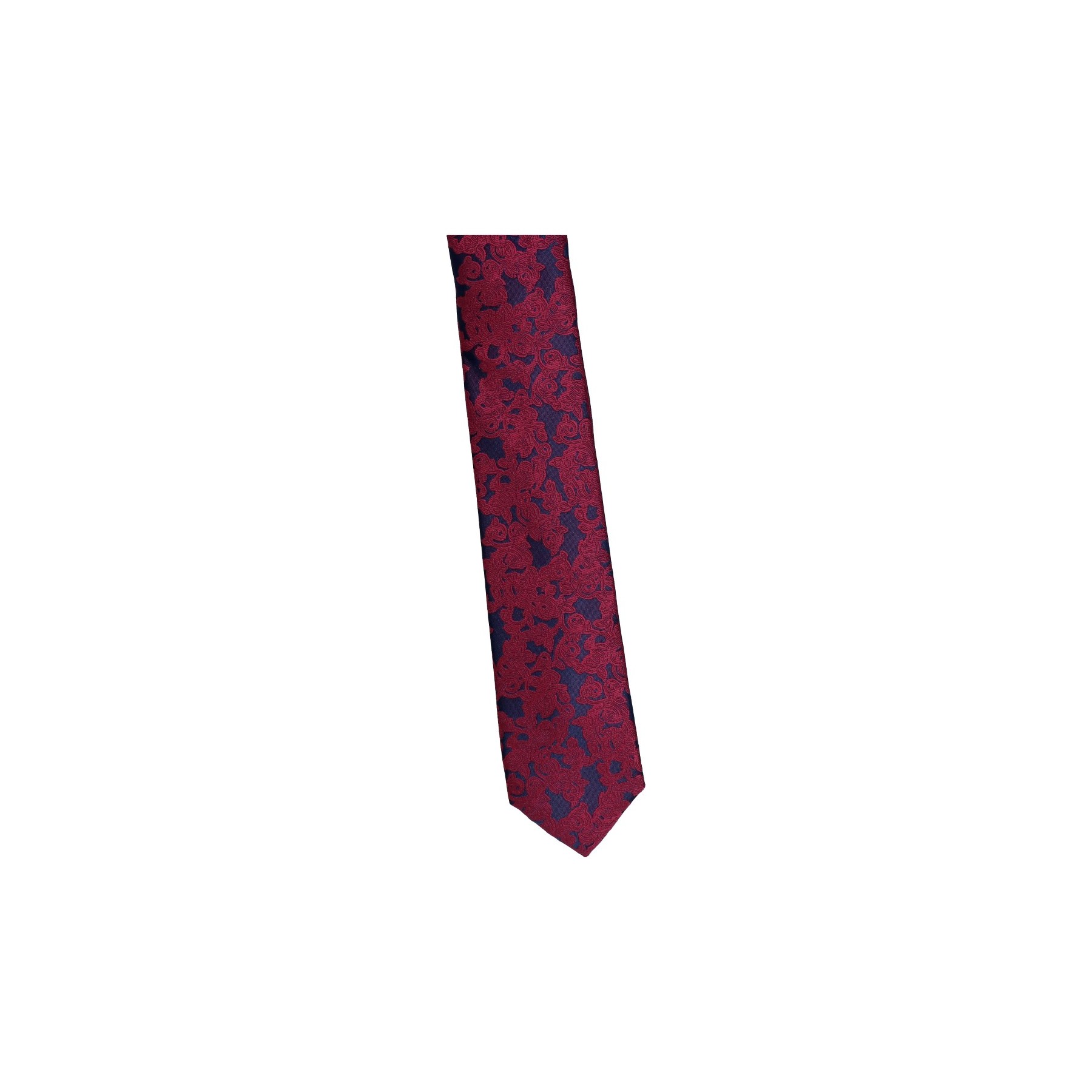 Krawat Wąski Granat Ciemny Czerwony - Floral
