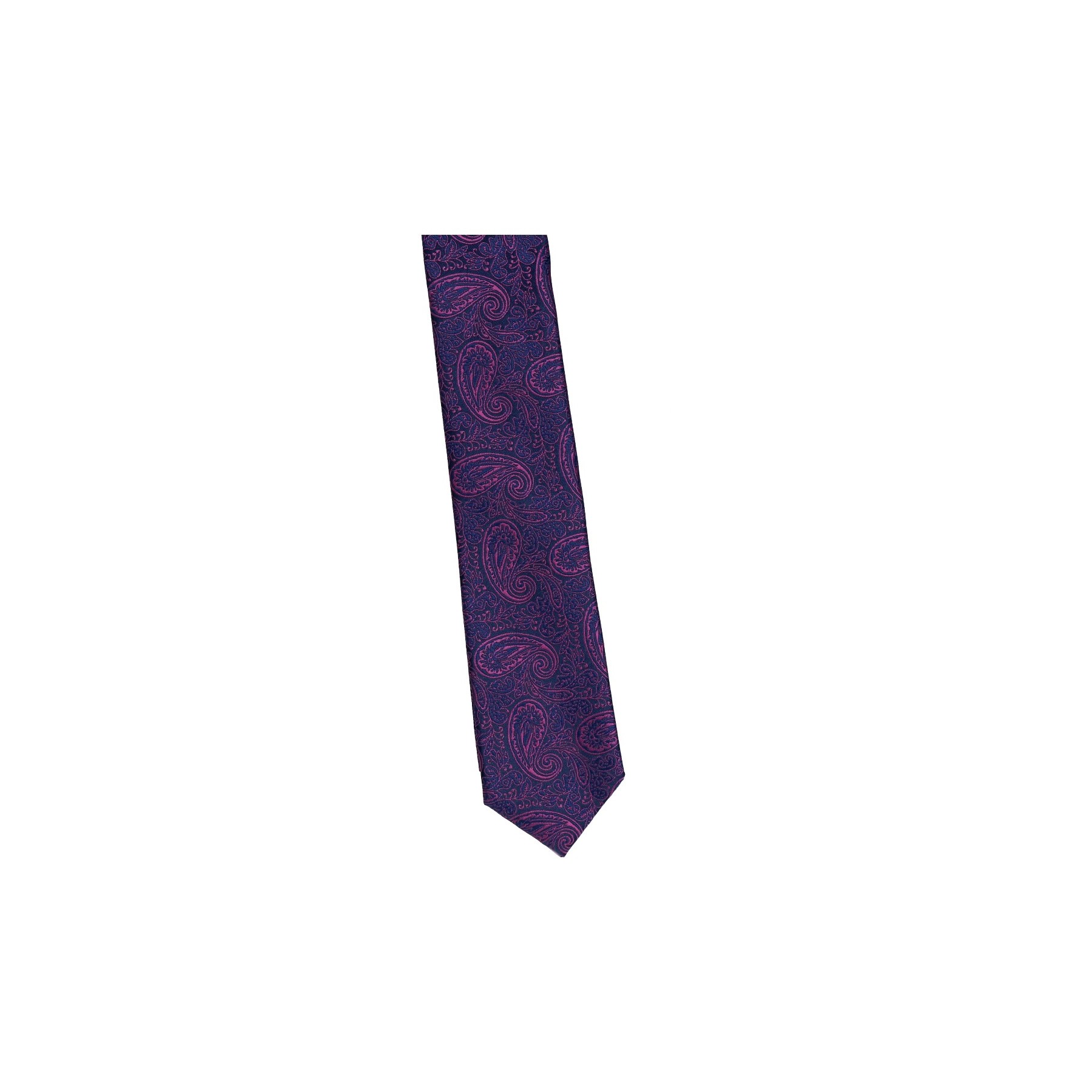 Krawat Wąski Granatowy Z Różem - Paisley