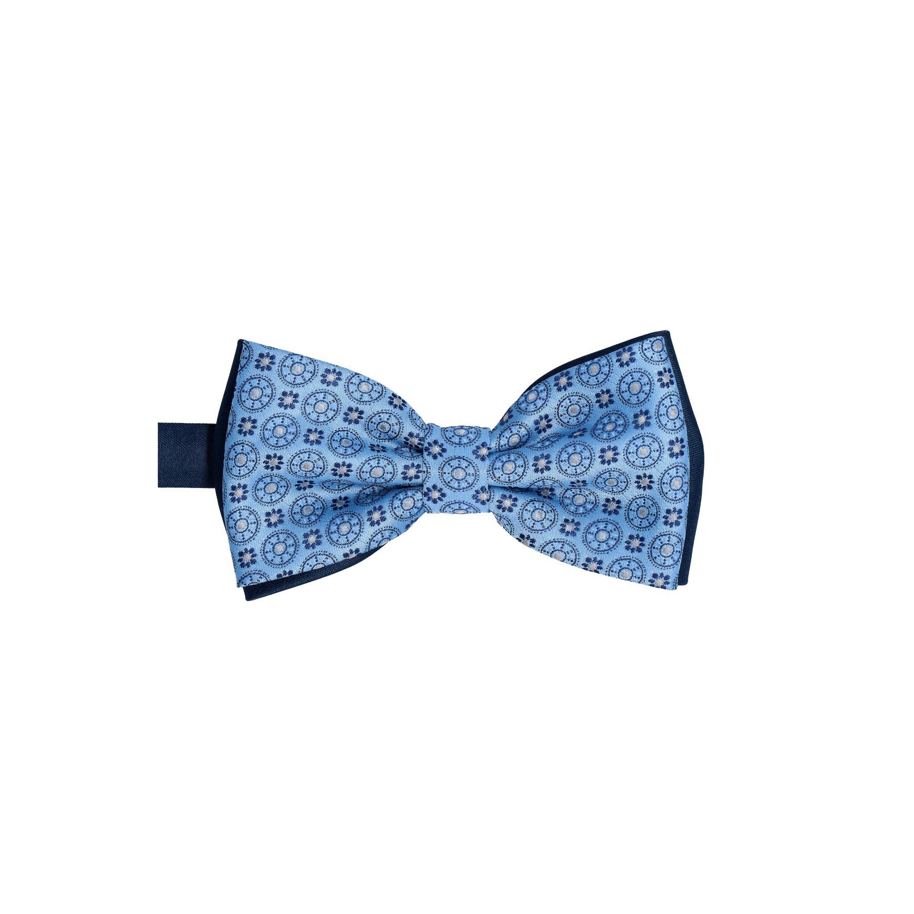 Mucha Motyl Błękitna W Kwiatuszki I Kółeczka Na Granatowym Podkładzie