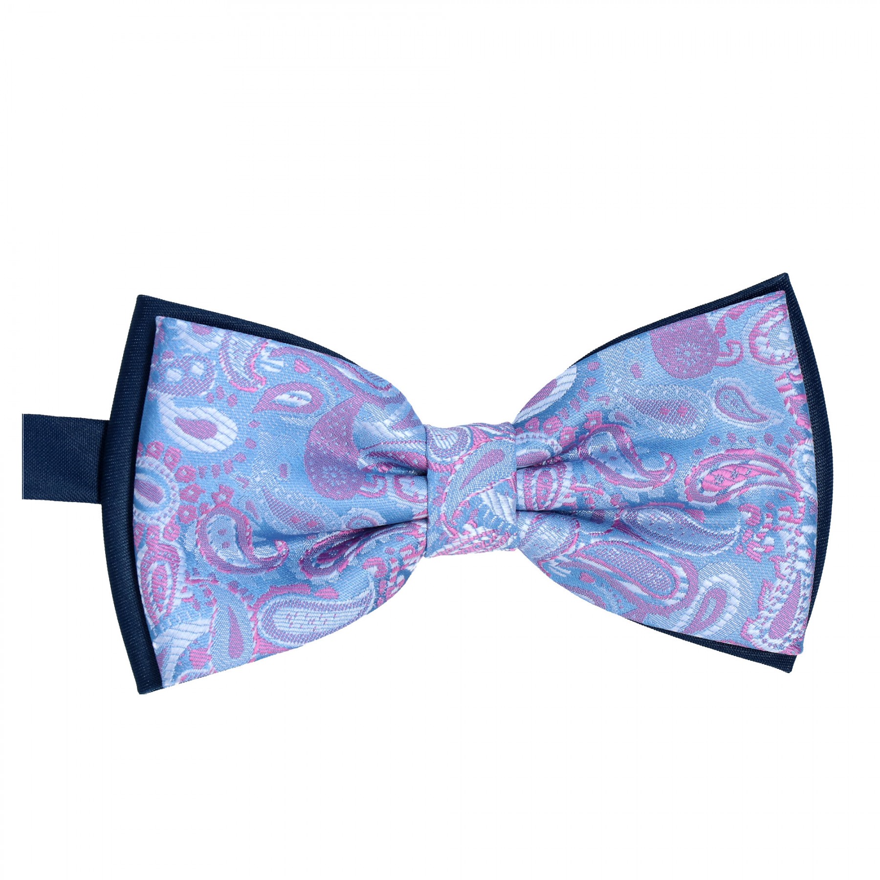 Mucha Błękitna Z Różowym Na Granatowym Podkładzie - Paisley - Motyl