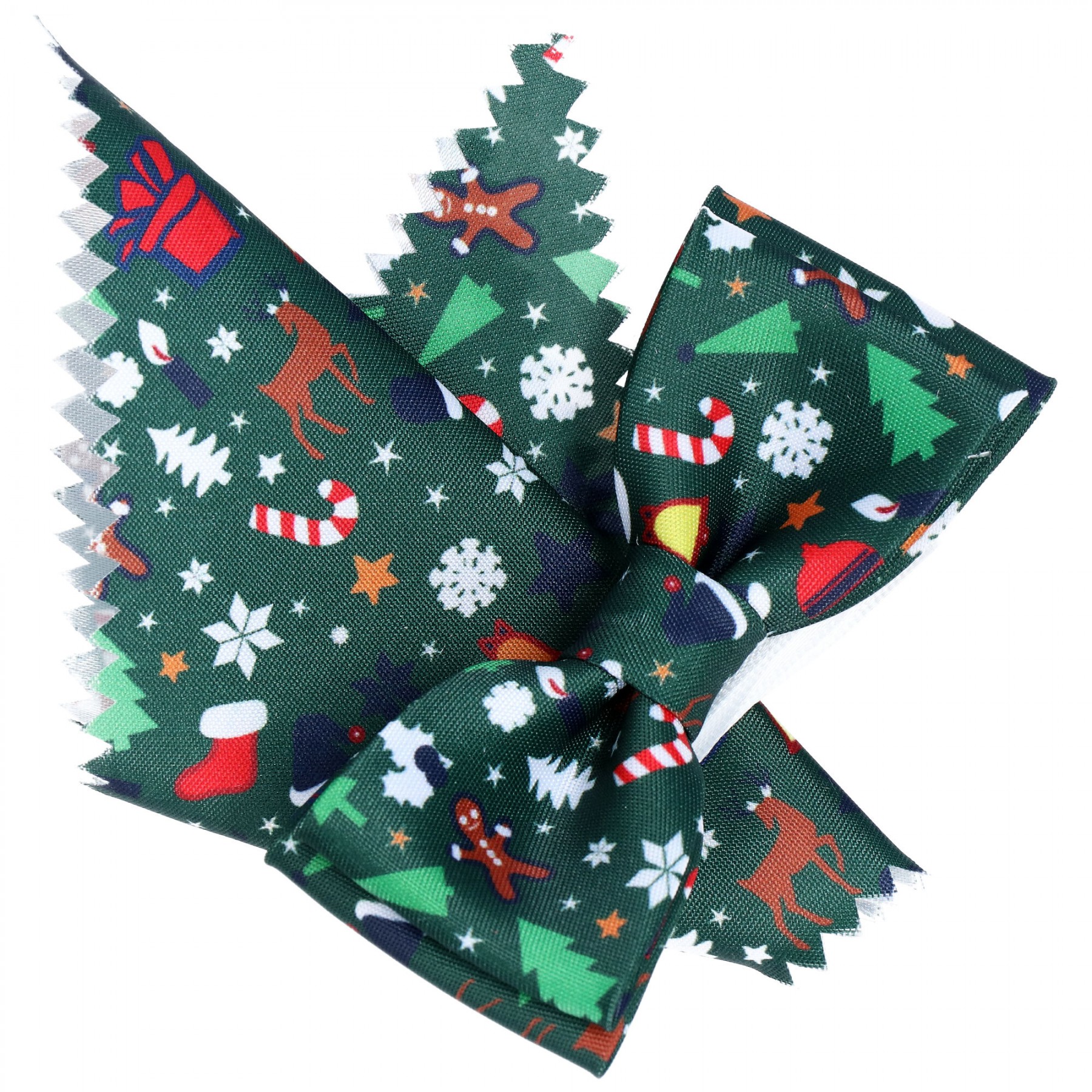 muszka dziecięca zielona w choinki płatki śniegu renifery i prezenty