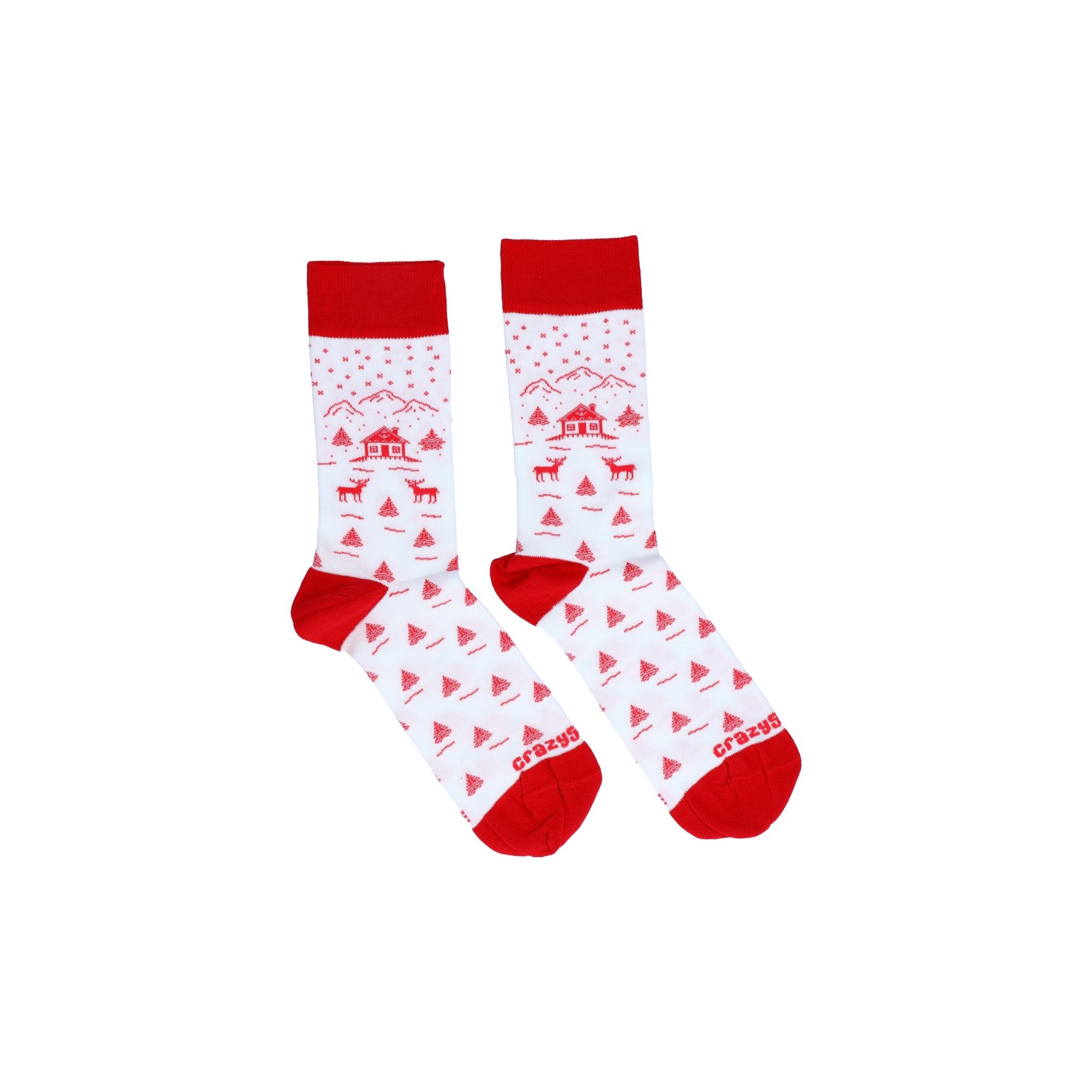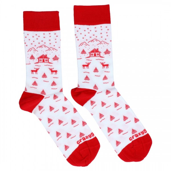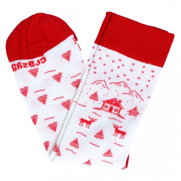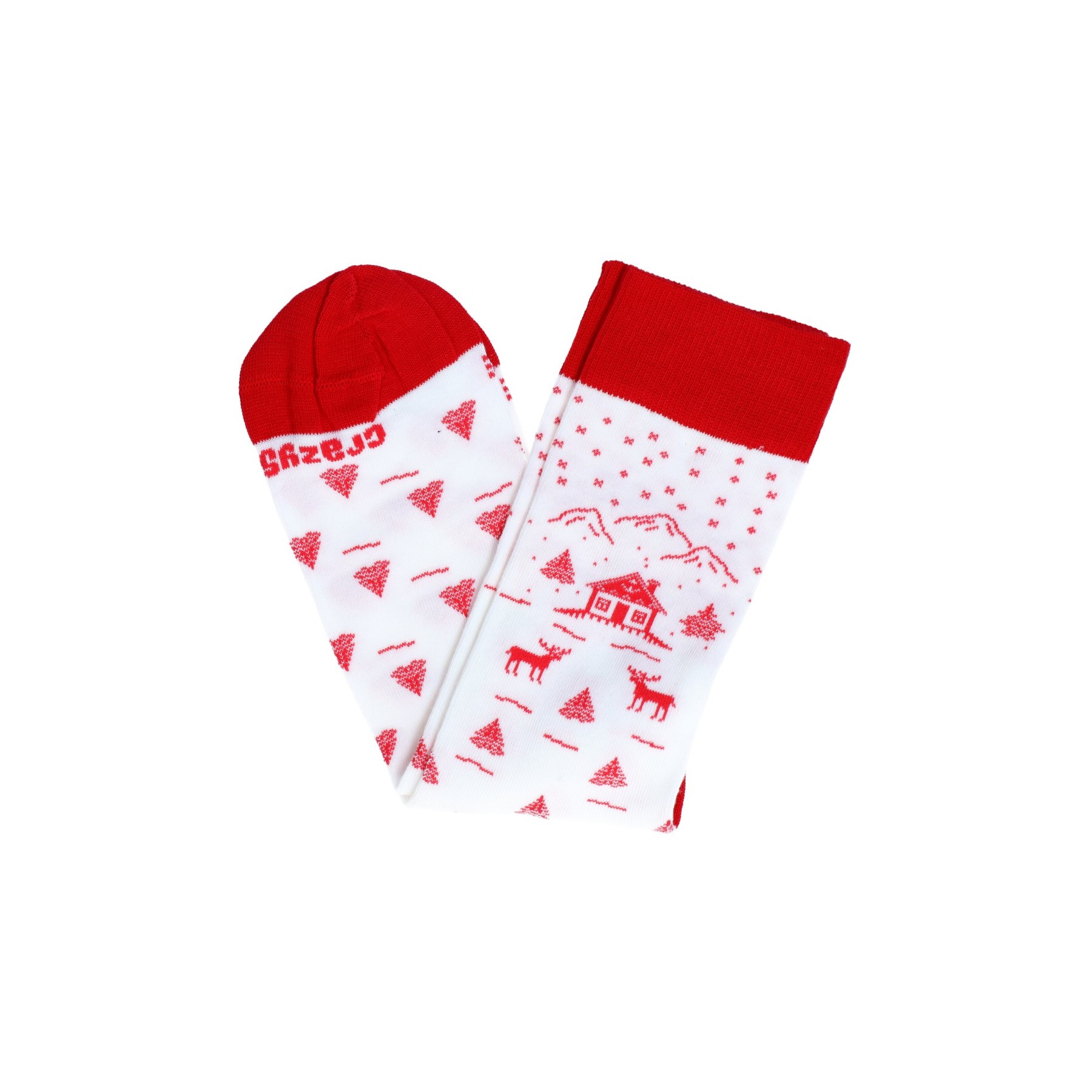 Skarpety Świąteczne - Białe Z Czerwonym Świąteczny Wzór