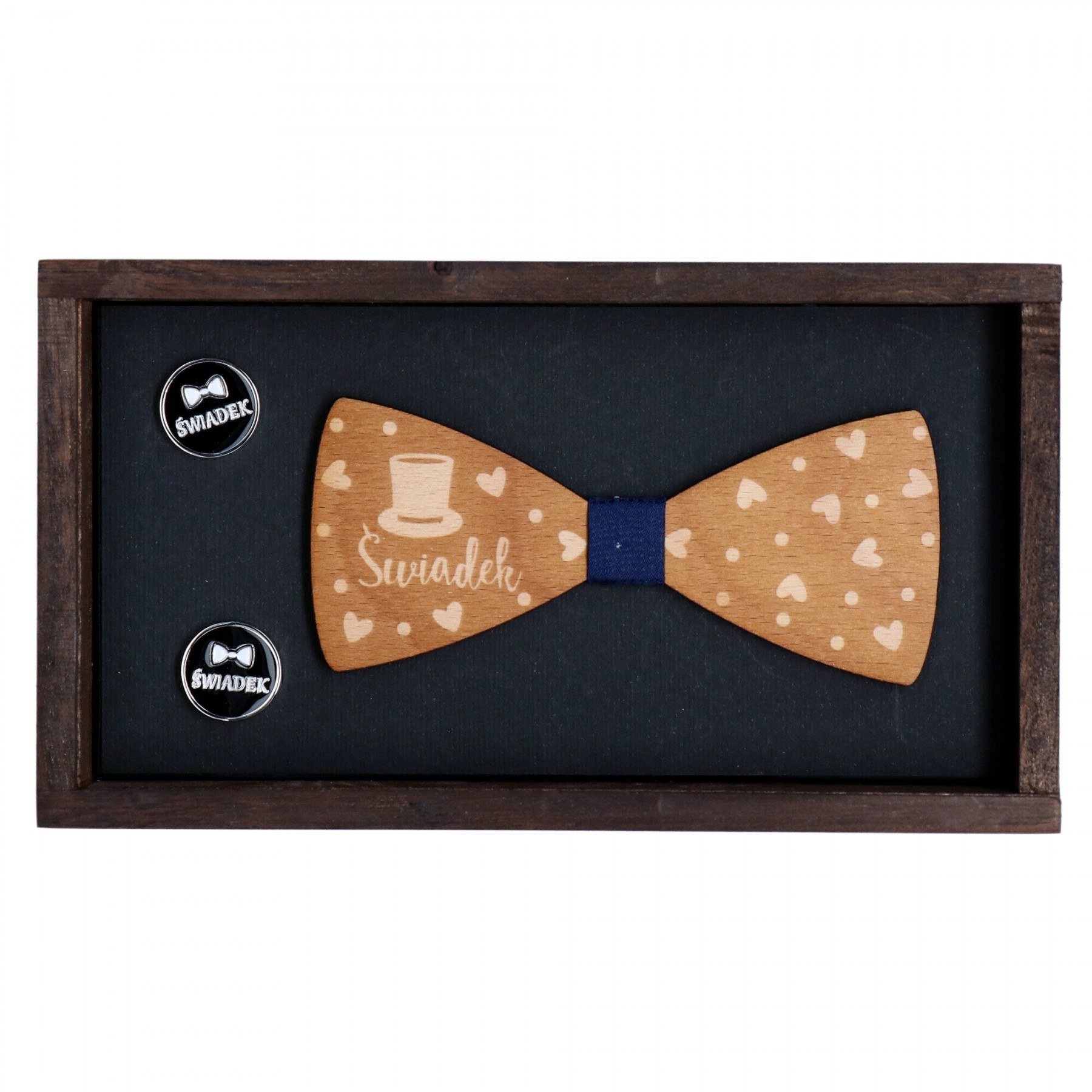 Zestaw Prezentowy Drewniany - Mucha Świadek +Spinki Świadek