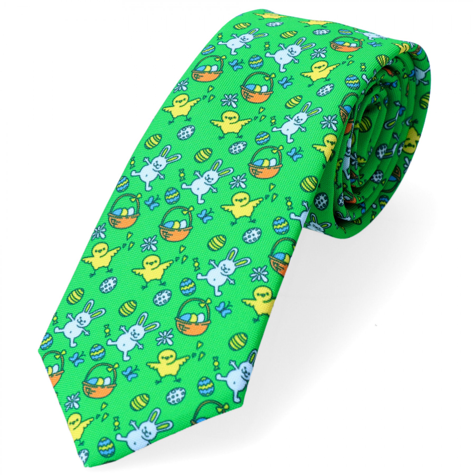 Krawat Wielkanoc Radosne Zajączki I Kurczaczki Na Zielonym Tle