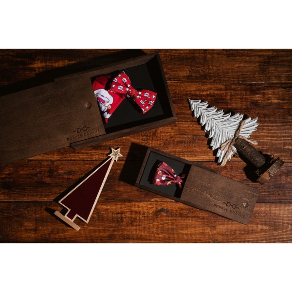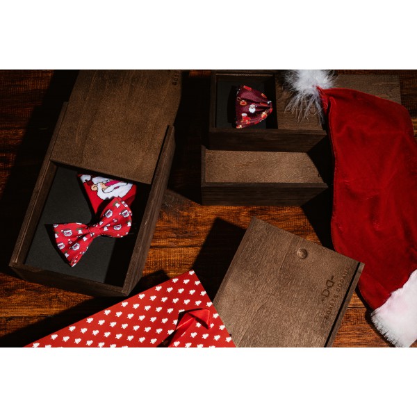 Zestaw Prezentowy świąteczny Czerwony Skarpety + Mucha W Mikołaje w Drewnianym Pudełku